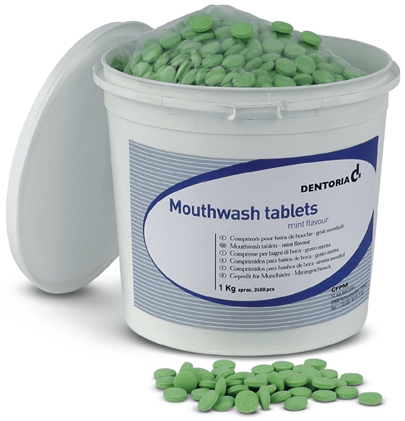 Comprimés verts au goût mentholé pour bains de bouche. La boite de 1 kg