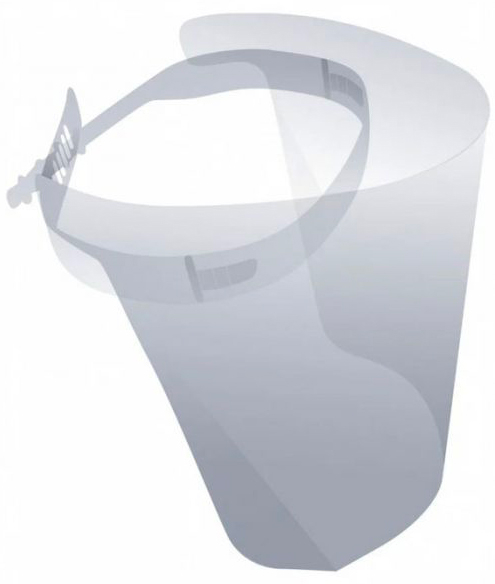 Matériaux conforme aux exigences de la FDA, USA (Food and Drug Administration) et les normes BGA (Bundesgesundheitsamt, Allemagne) pour le contact avec les denrées alimentaires. Le plastique est inodore et autorisé à être utilisé dans l’industrie alimentaire et médicale. Le bandeau ajustable de la visière de protection est en plastique souple. La visière est articulée, permet l’utilisation de lunettes et de loupes binoculaires, et se relève pour un changement facile du masque protecteur. Le bandeau facial se fi xe avec deux boucles de fixation réglables. De forme convexe, cette visière a la parfaite dimension pour couvrir tout le visage. Pas de formation de buée, respiration facile et finitions douces. Le bandeau s’ajuste en fonction de la taille de la tête. Pèse seulement 66 g. A assembler.